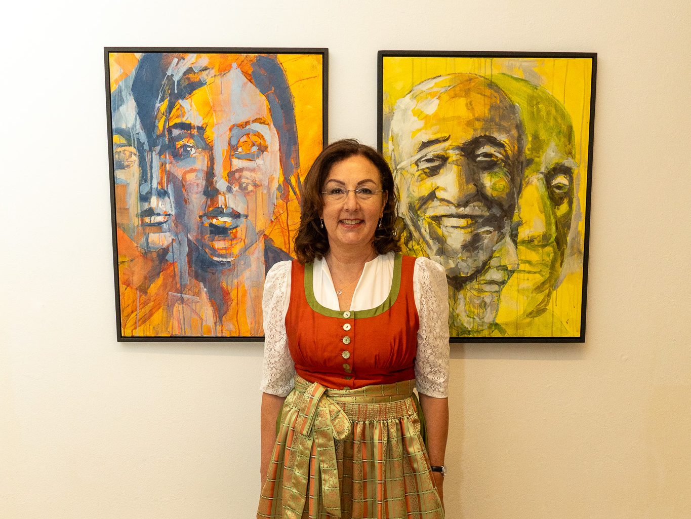 | Weibs-Bilder lächelnd ernst verspielt nachdenklich manchmal den Blick nach innen gerichtet kraftvoll und doch fragil zart und stark zugleich Frauen – verwurzelt im Leben Frau-sein in allen Phasen des Lebens Frau-sein mit vielen Facetten des Lebens Weibs-Bilder Frauen-Bilder Seelen-Bilder In wunderbarer Weise bringt Frau Veronika Kolp die tiefgründigen und poetischen Seiten der Frauen auf die Leinwand. Gelebtes Leben wird spürbar und sichtbar. Wir sehen in der Ausstellung Portraits von starken Tiroler Frauen, die ihren Lebensweg gestalten, ihre eigene Aufgabe gefunden haben und ihre Begabungen leben. Zugleich erahnen wir etwas von der Stärke und Zartheit der Künstlerin, die uns durch ihre Portraits einen Einblick in ihr eigenes Frauenleben gewährt. Eine Frau, die IHREN WEG gefunden hat und ihn auf der Leinwand mit Farbe behutsam und kraftvoll geht „ein Weibsbild eben“ Mag.a Sonja Christine Wechselberger Mai 2025 |